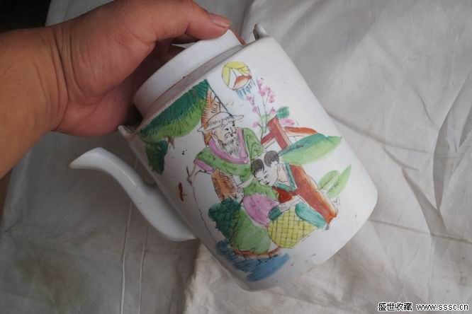 壺高16厘米,蓋子有點磕碰,其他沒毛病,換個蓋子就是全品,包老民國,畫的很是傳神,較少見,可收藏。