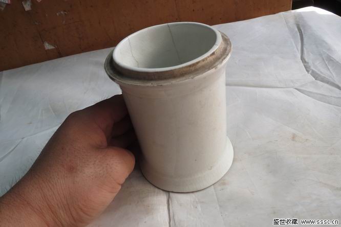 高12厘米多,口徑9厘米多,蓋子沒有了,口沿兒有紋,底上有款看不清,較為少見,包老,可做筆筒。