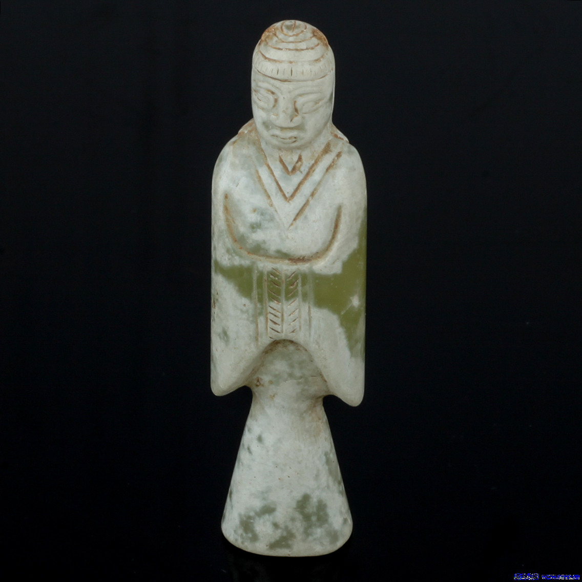 正文摘要:A0010060905004 此玉俑刀法流暢,形態(tài)逼真,玉人斂手為禮,神態(tài)自然,其玉質(zhì)溫潤,包漿自然,不可多得,喜歡的朋友不要錯過! . x0 N: q% x z9 t3 A ... |
