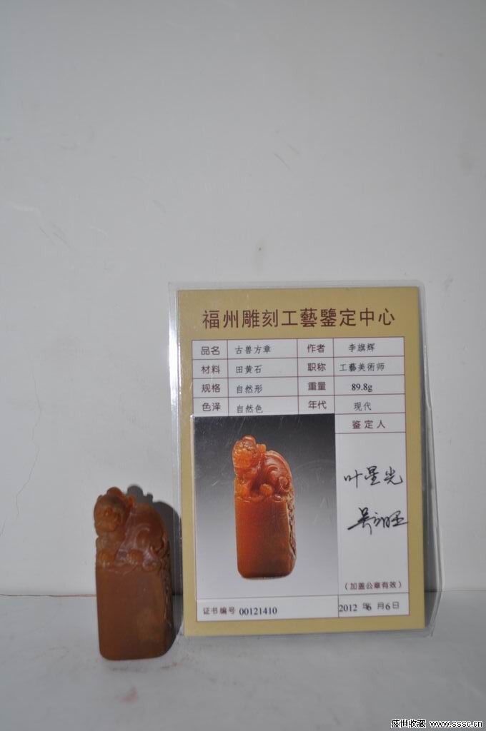 田黃石古獸方章6.4*2.6*2.8CM,重89.8克