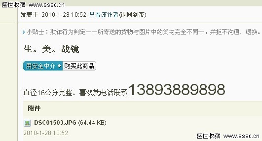 正文摘要:http://bbs.sssc.cn/viewthread.php?tid=779088&page=1#pid77693764 |, y' V+ z! R6 w+ z6 u: n 1 w5 c- B. K" P9 t5 C, | 第一次購買東西,投訴人!第一時(shí)間和賣家電話確認(rèn),帖子上描述東西完整!但收到缺有一個(gè)綠 ... |