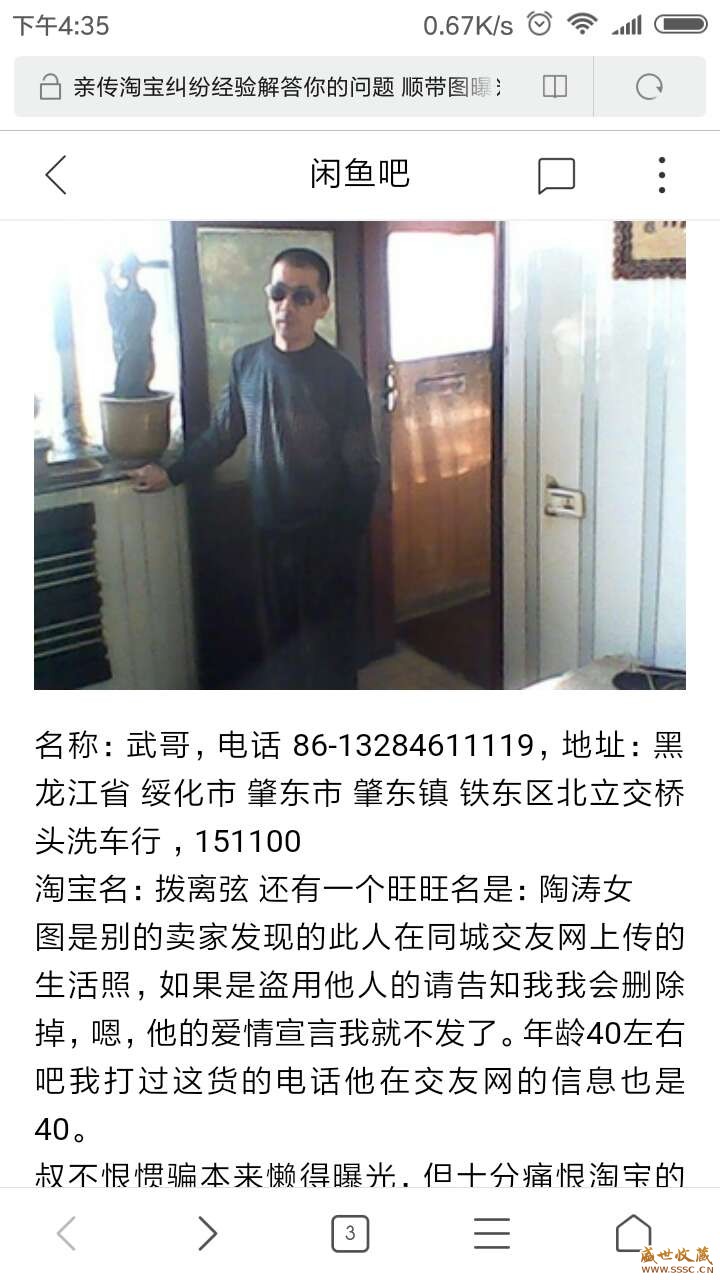 正文摘要:帶了六年多的小孩沒怎么做生意,卻被一直信任的給坑了,導致錢和獎?wù)聝煽眨_子信息:娟子,13284611119,黑龍江省,綏化市,肇東市,肇東鎮(zhèn)鐵東區(qū) 北橋頭金玉收藏館,151100,信息經(jīng)常在變化。此騙子采用調(diào)包再以拒收,因 ... |